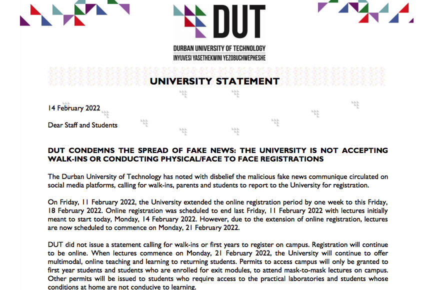 The Durban University of Technology (DUT) continues to commend all its essential workers for their dedication and commitment in providing…