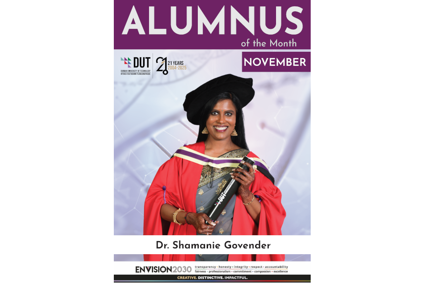 The DUT Advancement and Alumni Relations Team proudly celebrates Dr Shamanie Govender has been selected as our Alumnus